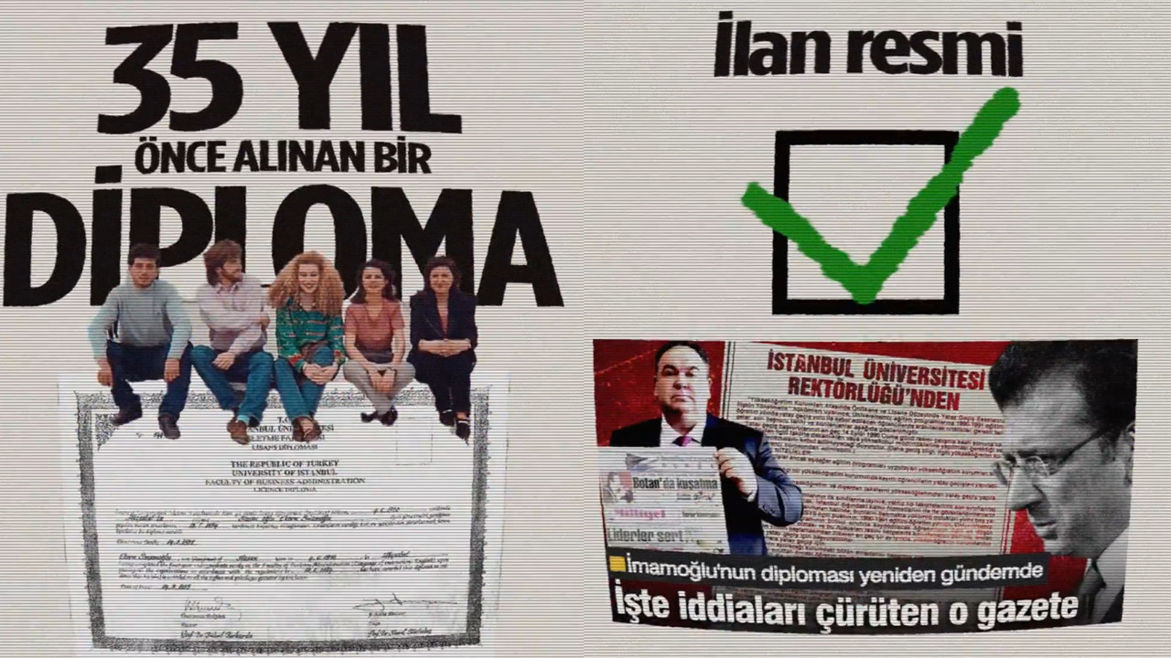 Videoda, İmamoğlu’nun 35 yıl önce mezun olduğu üniversiteden aldığı diplomanın, resmi ilan ve transkript belgeleri ortadayken iptal edildiği vurgulandı. İstanbul Üniversitesi’nin, dönemin yatay geçiş şartlarını sağlamadığı gerekçesiyle diplomanın geçersiz olduğunu öne sürdüğü ancak 30 Temmuz 1990 tarihli gazetede yer alan resmi ilanda bu şartların açıkça belirtildiği ve İmamoğlu’nun tüm koşulları sağlayarak mezuniyetini tamamladığı aktarıldı.