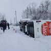 Abone OlÇorum'un Alaca ilçesinde kar yağışı nedeniyle kontrolden çıkan yolcu otobüsünün yol kenarına devrildiği kazada 14 kişi yaralandı.