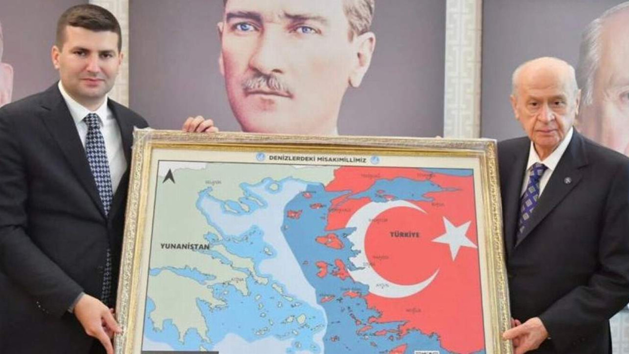 Ülkü Ocakları Eğitim ve Kültür Vakfı Genel Merkezi’ni ziyaretinde MHP lideri Devlet Bahçeli’ye, Ülkü Ocakları Genel Başkanı Ahmet Yiğit Yıldırım tarafından "Denizlerdeki Misak-ı Millimiz" adlı bir harita hediye edilmişti.