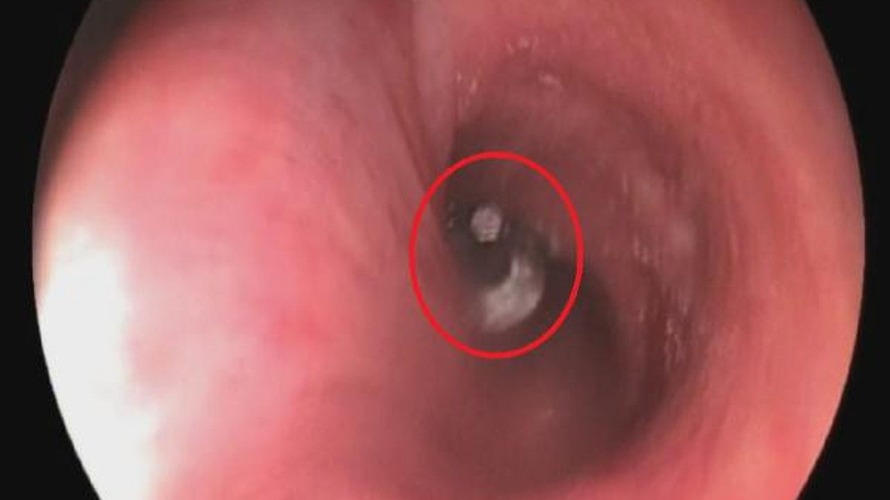 Bursa'da kimliğinin açıklanmasını istemeyen kadın hasta, implant tedavisi için diş kliniğine gitti. Ancak tedavi sırasında implant dişin demir parçası, kadının nefes borusundan akciğerine kaçtı. Kadın, özel bir hastaneye başvurdu. Çekilen röntgen sonunda demir parçanın akciğerde olduğu tespit etti. Parça endoskopi yöntemiyle akciğerden çıkarıldı. Demirin akciğerden çıkarılma anı operasyon kamerasına yansıdı.