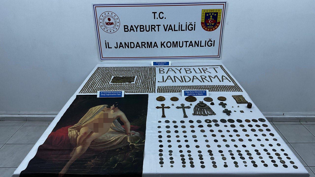 Bayburt İl Jandarma Komutanlığınca derinleştirilerek sürdürülen araştırmalar ve yapılan istihbari çalışmalar sonucunda Doğu Anadolu ve Güneydoğu Anadolu bölgesinden çıkarılan tarihi eserlerin aracı şahıslar vasıtasıyla batı illerine satıldığı ve bir kısmının yurtdışına çıkarılma hazırlığının yapıldığının tespit edilmesi üzerine Adli Makamlardan alınan arama kararı ile 21 şüpheliye ait ikamet, iş yeri ve araçlara yönelik 14 ilde eş zamanlı olarak yapılan operasyon sonucu 3 bin 72 adet Osmanlı dönemine ait sikke, 178 adet Doğu Roma ve Bizans dönemine ait yaklaşık bin yıllık olduğu değerlendirilen sikke ve çeşitli objeler ile şüphelilerin 6 milyon Euro’ya satışa sundukları dünyaca ünlü ressam Pablo Picasso’ya ait olduğu değerlendirilen tablo ele geçirildi.