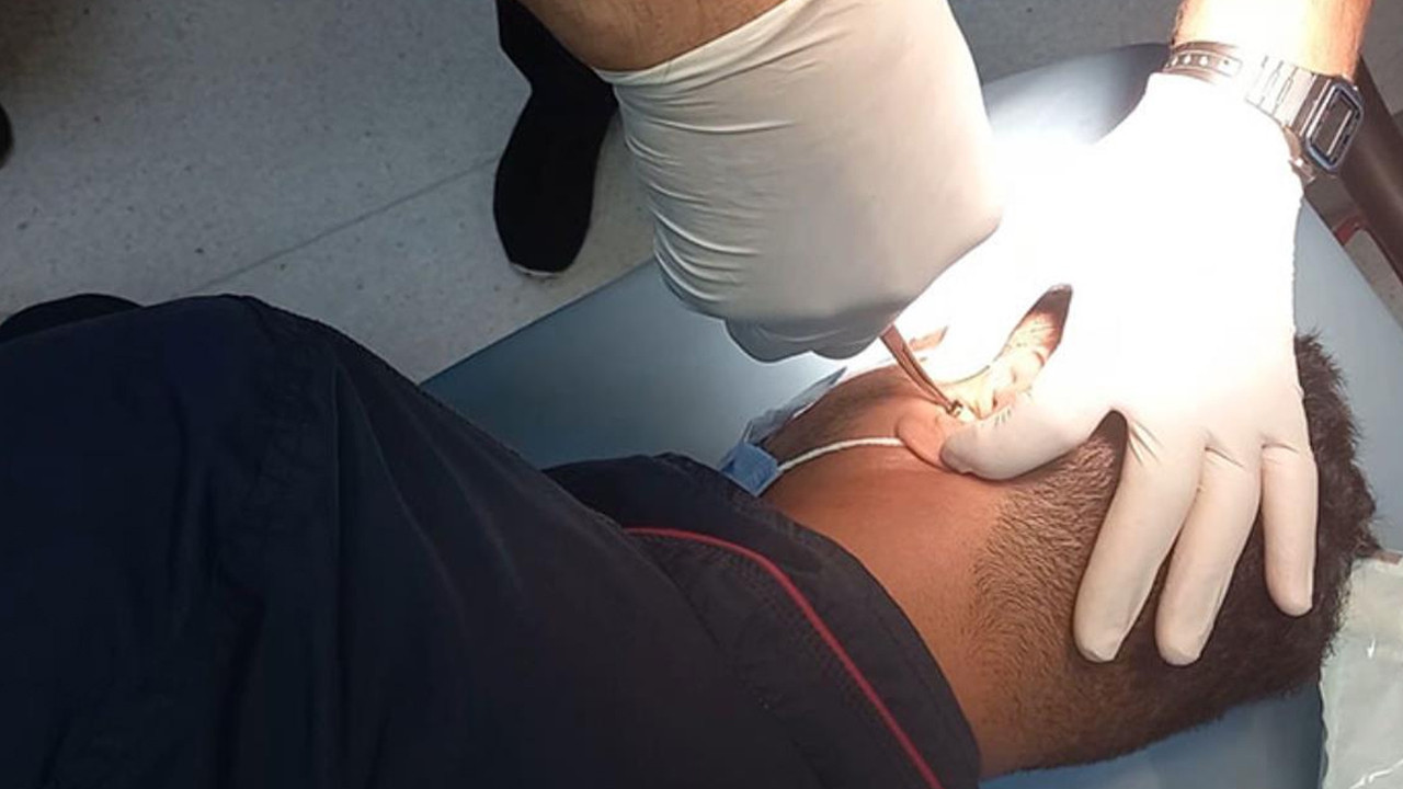Kaçakçılık ve Organize Suçlarla Mücadele Daire Başkanlığı (KOM) polisi, S.A.'nın kulağındaki cihazı çıkartabilmek için Yüksek İhtisas Hastanesi'ne götürdü. Burada sağlık görevlilerince, kulağındaki böcek cımbız yardımıyla çıkartıldı. Hastanedeki işlemlerin ardından emniyete götürülen S.A.'nın suç ortağı H.K. da yapılan operasyonla gözaltına alındı. Her iki şüphelinin de emniyetteki işlemleri sürüyor.