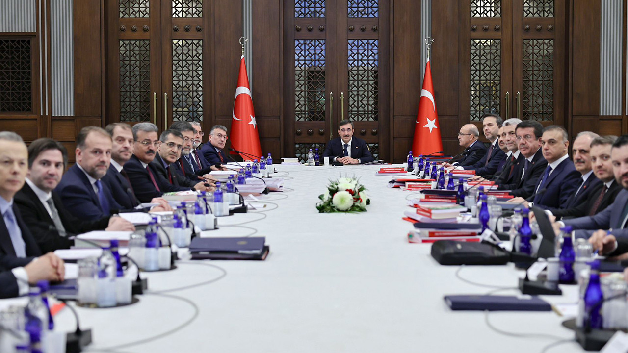 EKK, Cumhurbaşkanlığı Külliyesi'nde, Cumhurbaşkanı Yardımcısı Cevdet Yılmaz başkanlığında toplandı. Toplantıya, Çalışma ve Sosyal Güvenlik Bakanı Vedat Işıkhan, Hazine ve Maliye Bakanı Mehmet Şimşek, Sanayi ve Teknoloji Bakanı Mehmet Fatih Kacır, Enerji ve Tabii Kaynaklar Bakanı Alparslan Bayraktar, Tarım ve Orman Bakanı İbrahim Yumaklı, Milli Eğitim Bakanı Yusuf Tekin, Ticaret Bakanı Ömer Bolat, Cumhurbaşkanlığı Strateji ve Bütçe Başkanı İbrahim Şenel, AK Parti Grup Başkanı Abdullah Güler, Genel Başkan Yardımcısı Nihat Zeybekci ile ilgili kurum ve kuruluşların temsilcileri katıldı. 3 saat 5 dakika süren toplantının ardından yazılı açıklama yapıldı.
