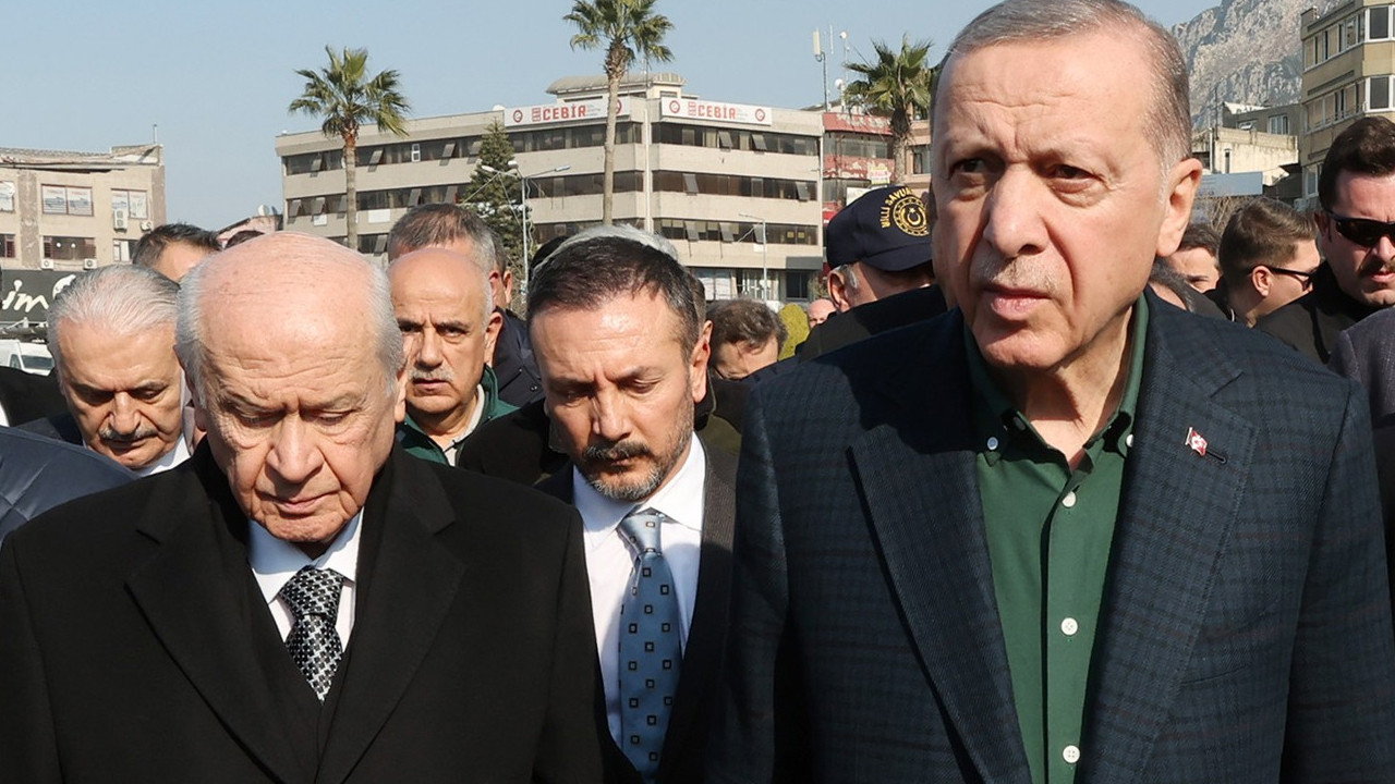 Antakya’da incelemelerde bulunan Erdoğan ve Bahçeli’ye Milli Savunma Bakanı Hulusi Akar, İçişleri Bakanı Süleyman Soylu, Sağlık Bakanı Fahrettin Koca, Cumhurbaşkanlığı Sözcüsü İbrahim Kalın eşlik etti.