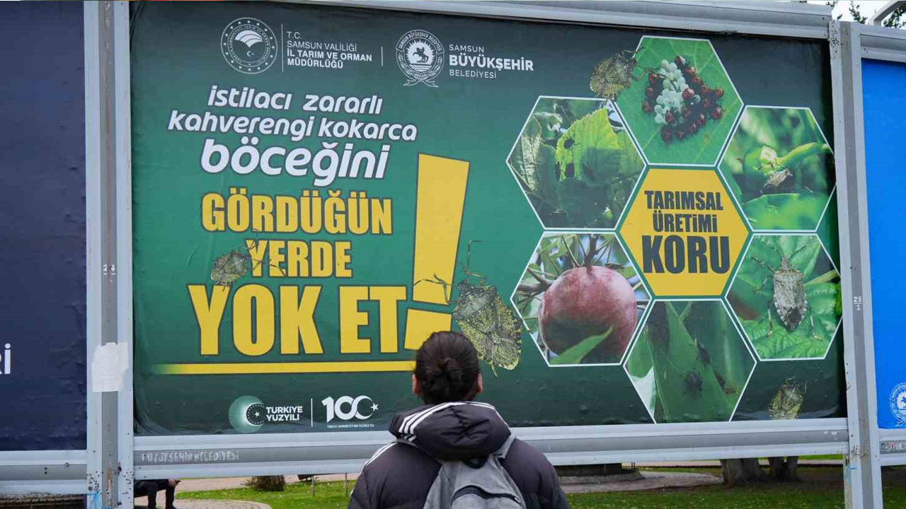 Sebze, meyve ve çiftçilerin en büyük düşmanı olan "kahverengi kokarca" böceği ile mücadeleye dikkat çekmek amacıyla Samsun’un ana arterlerindeki billboardlara “Gördüğün yerde yok et” afişleri asıldı.