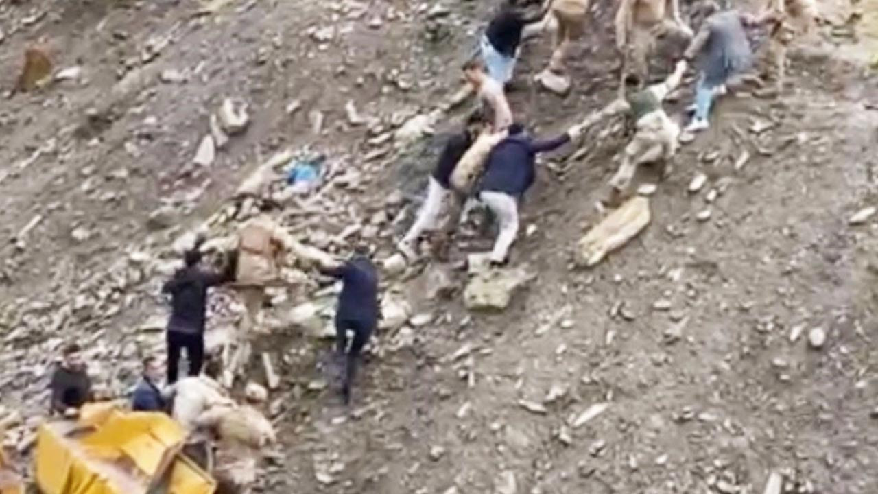 Köylüler araçta 9 askerin bulunduğunu ve bazılarının hafif yaralandığını belirtti.