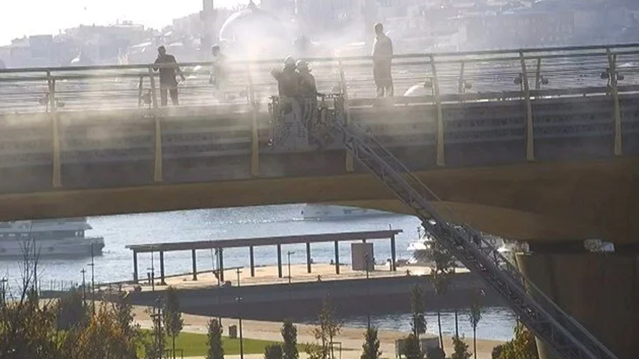İstanbul Beyoğlu'nda Haliç metro köprüsündeki elektrik kablolarında çıkan yangın nedeniyle seferler durdu.