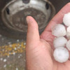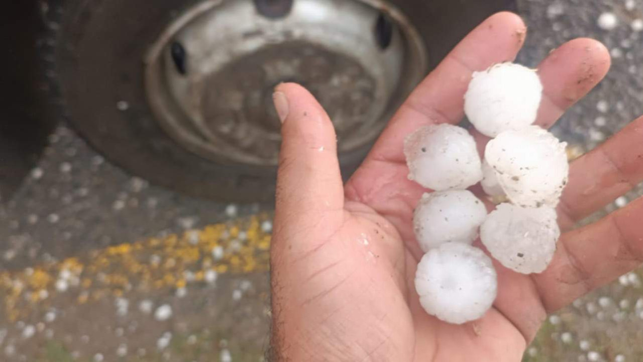Aracından inen vatandaş, eline topladığı ceviz büyüklüğündeki dolunun fotoğrafını çekip paylaştı.