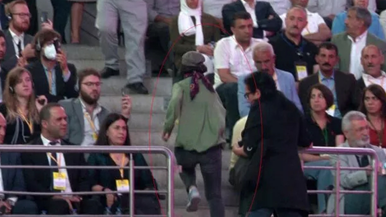 HDP 5’inci Olağan Kongresi Ankara’da yer alan Ankara Spor Salonunda gerçekleştiriliyor. Kongre esnasında HDP Eş Başkanı Pervin Buldan’ın sahnede konuşma yaptığı esnada, yüzlerini gizleyen iki kişi sahnenin önüne doğru hamle yaparak terörist başı Abdullah Öcalan’ın posterini açmaya çalıştı. Alanda yer alan görevlilerce şahıslara müdahale edilirken, yüzü bezle kapalı şahıslar posteri eline alarak tribünlere doğru koşarak uzaklaştı.