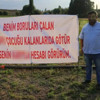 Astırdığı pankart ile borularını çalan şahıslara seslenen Yaşık, “Ben çiftçilikle uğraşıyorum ve burada sulama borularını çalıyorlar benimde bu sene en az 250-300 adet civarı sulama borularım çalındı. Ben de buna sinirlenerek bu yazıyı yazdım eğer yiğit mertse adam gelsin benden özür dilesin affedeceğim ama özür dilemezse arkasındayım ve kimin olduğunu da biliyorum. Bu civarlarda çok kişinin borusu çalındı, çalan kişiler kendilerine boruları çalarak kazanç sağlıyorlar. Ama onları biliyoruz gelsinler özür dilesinler, ben kızara kızara bu yazıyı yazdım ama arkasındayım ve onları biliyorum. Karşı tarafta bir tarla sahibinin daha boruları çalındı köyde bir sürü kişinin boruları çalındı. Bunlar bu işi adet haline getirmişler. İş nöbet tutmaya doğru gidiyor ama biz nöbet tutmayacağız bu yazıyı dikkate alsınlar” dedi.