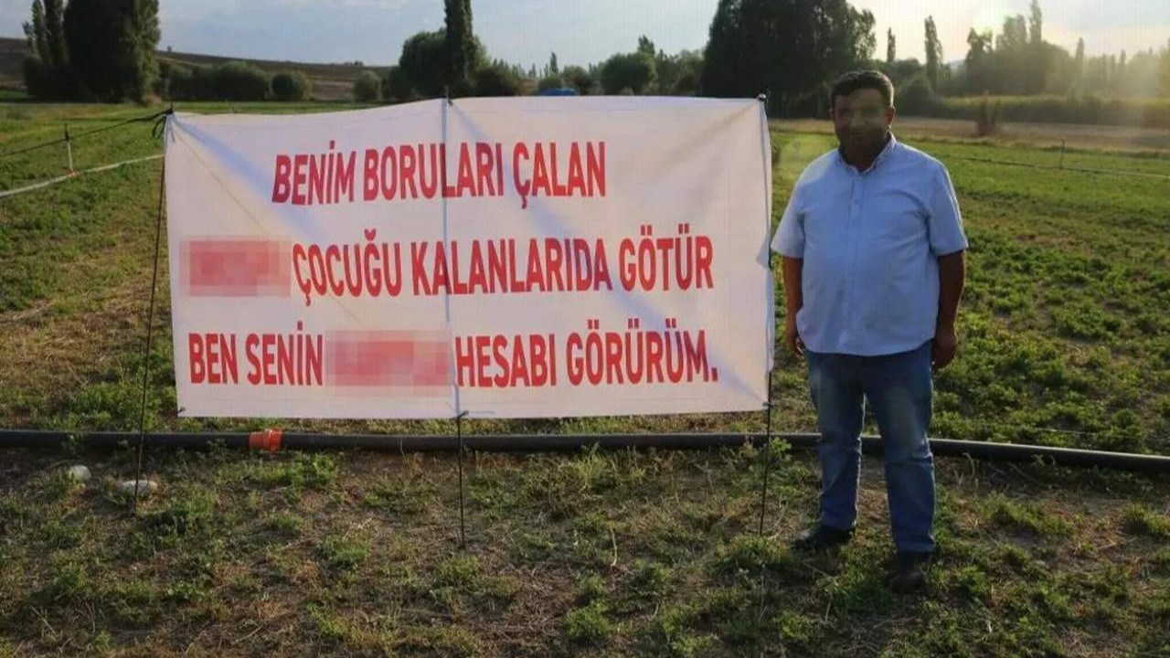 Afyonkarahisar’ın İhsaniye ilçesinde çiftçilik yapan İhsan Yaşık, tarlasından sulama borularının çalınmasına astığı pankartla tepki gösterdi. Pankarta yazılanlar ise görenleri şaşkına çevirdi. Hırsızlara öfkesinin dışa vurmuş halini yansıtan pankartla ilgili konuşan Yaşık, "Ben kızara kızara bu yazıyı yazdım ama arkasındayım. Bu yazıyı dikkate alsınlar" dedi.
