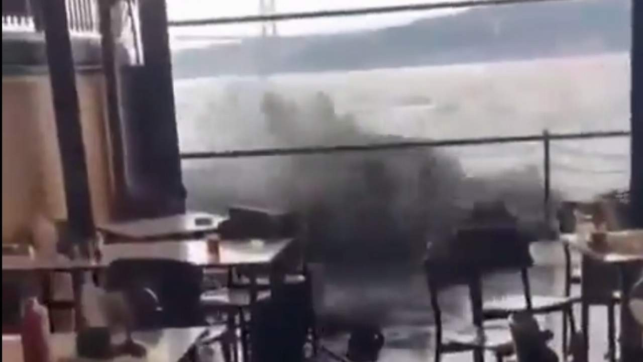 Süperhaber'de yer alan habere göre, tıklım tıklım çay bahçesinde oturan vatandaşlar büyük korku ve panikle dalgalardan kaçmaya çalıştı.