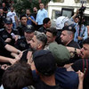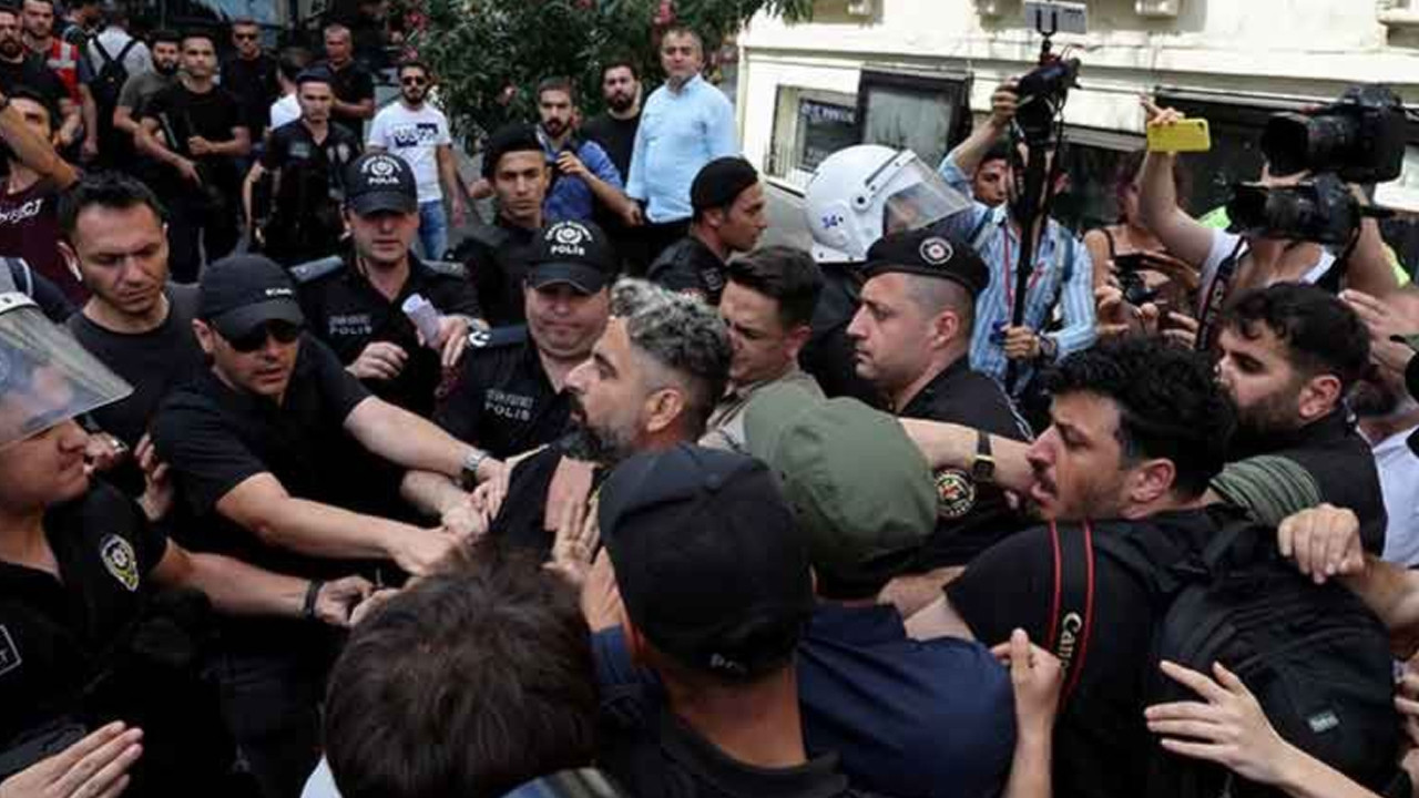 Polisler tarafından gözaltı koridoru oluşturuldu. Polis, basın mensuplarının görüntü almasını da engellerken AFP foto muhabiri Bülent Kılıç gözaltına alındı.