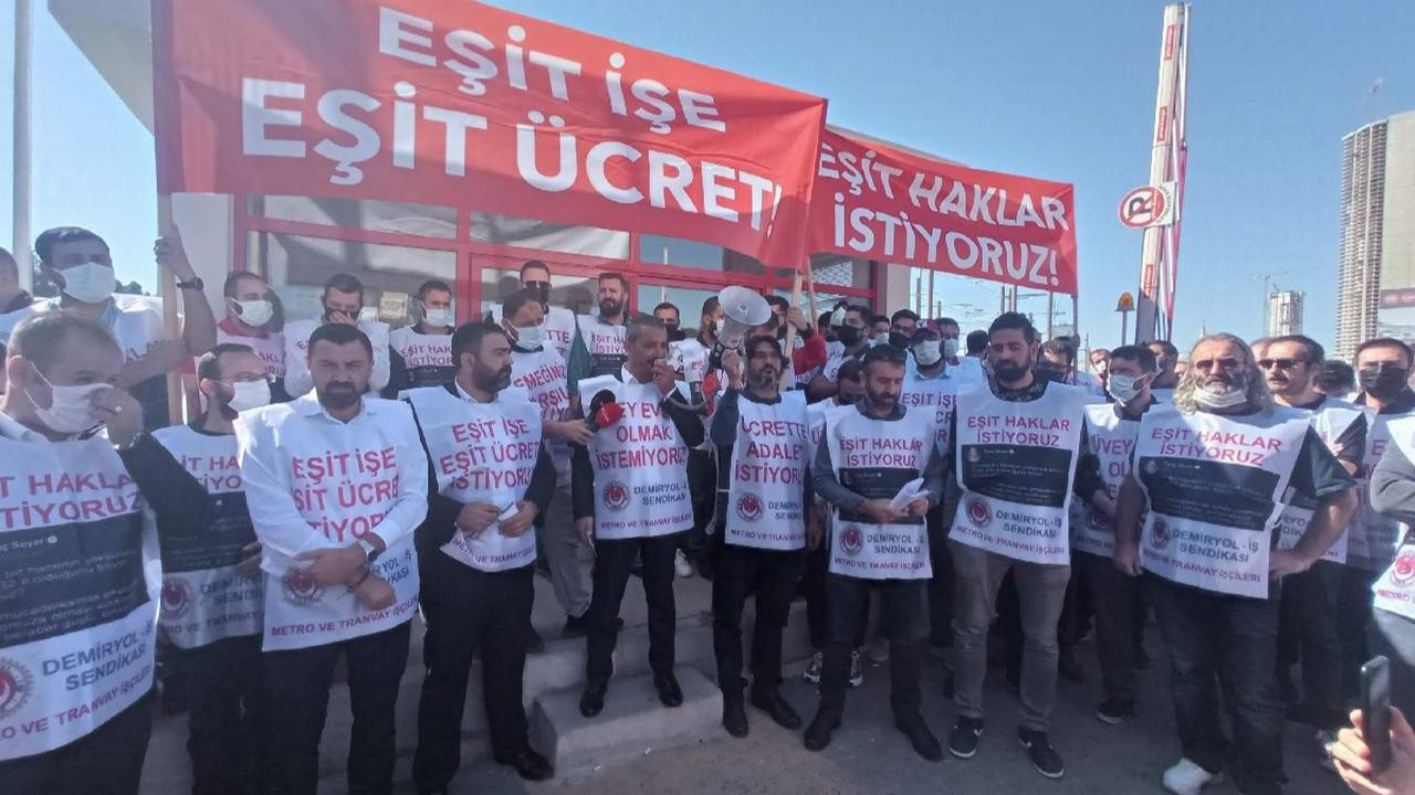 İzmir Büyükşehir Belediyesi’nin şirketlerinden İzmir Metro A.Ş. ve işveren sendikası Sosyal Demokrat Kamu İşverenleri Sendikası (SODEM-SEN) ile metro ve tramvayda yetkili olan Demiryol-İş Sendikası arasında yapılan görüşmelerde 69 maddeden ücretle ilgili 9’unda uzlaşılamayınca, işçiler İzmir Metro A.Ş. önünde eylem yapmıştı.
