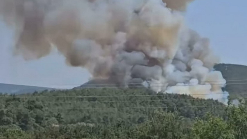 Henüz belirlenemeyen nedenle çıkan yangında, alevlere havadan ve karadan müdahale sürüyor. (DHA)