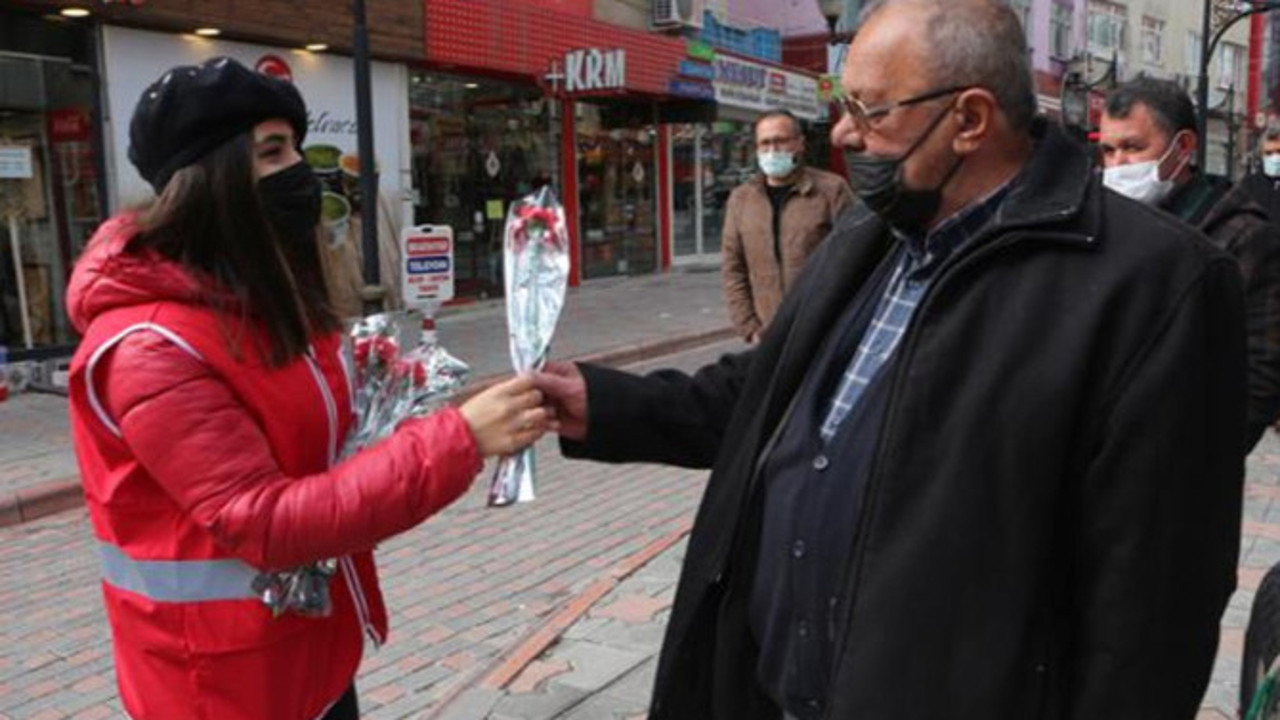 Kadın cinayeti işlenmeyen ilimizde erkeklere çiçek dağıtıldı