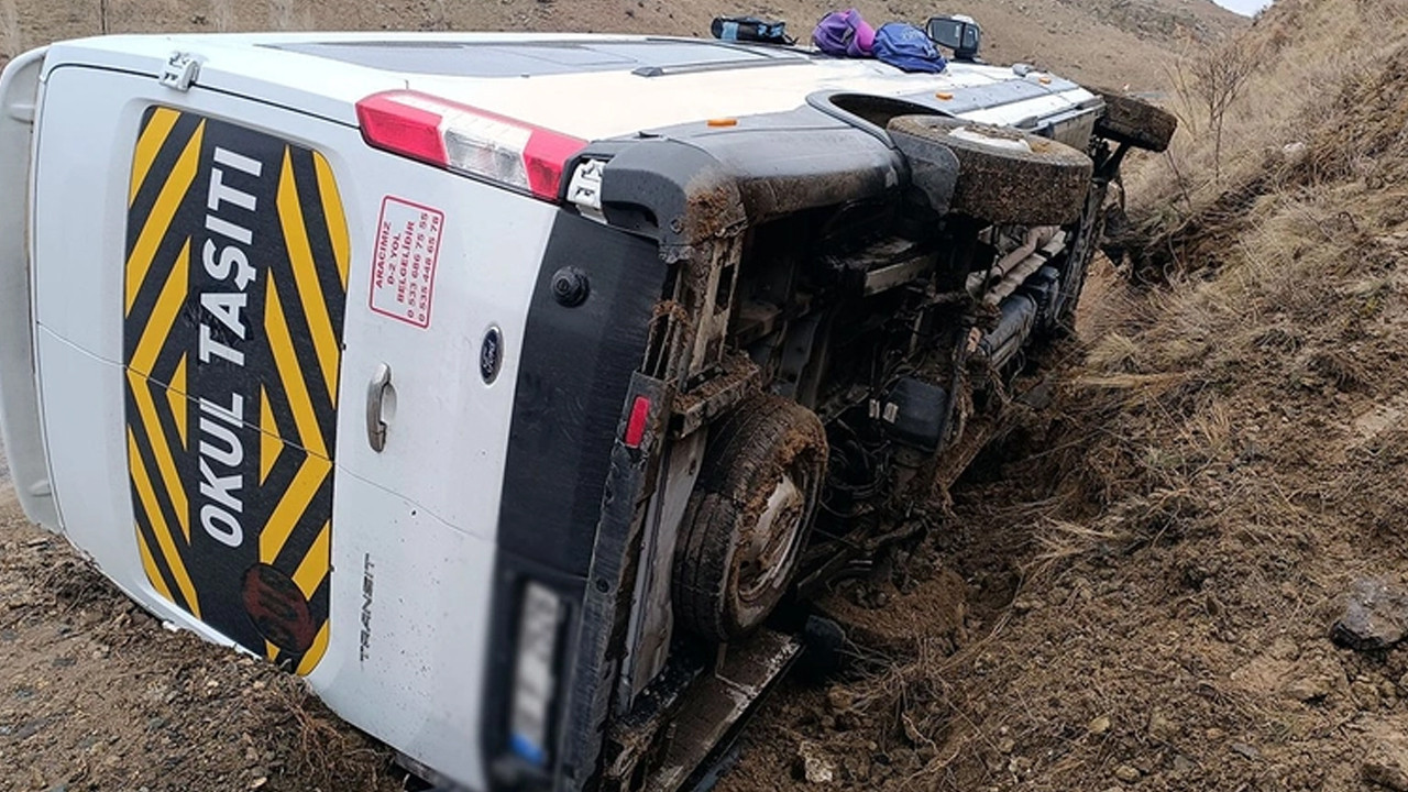 Kayseri'de yağışın etkisiyle kayganlaşan yol, kazayı getirdi. Öğrenci servisinin devrilmesiyle 10 çocuk yaralandı.