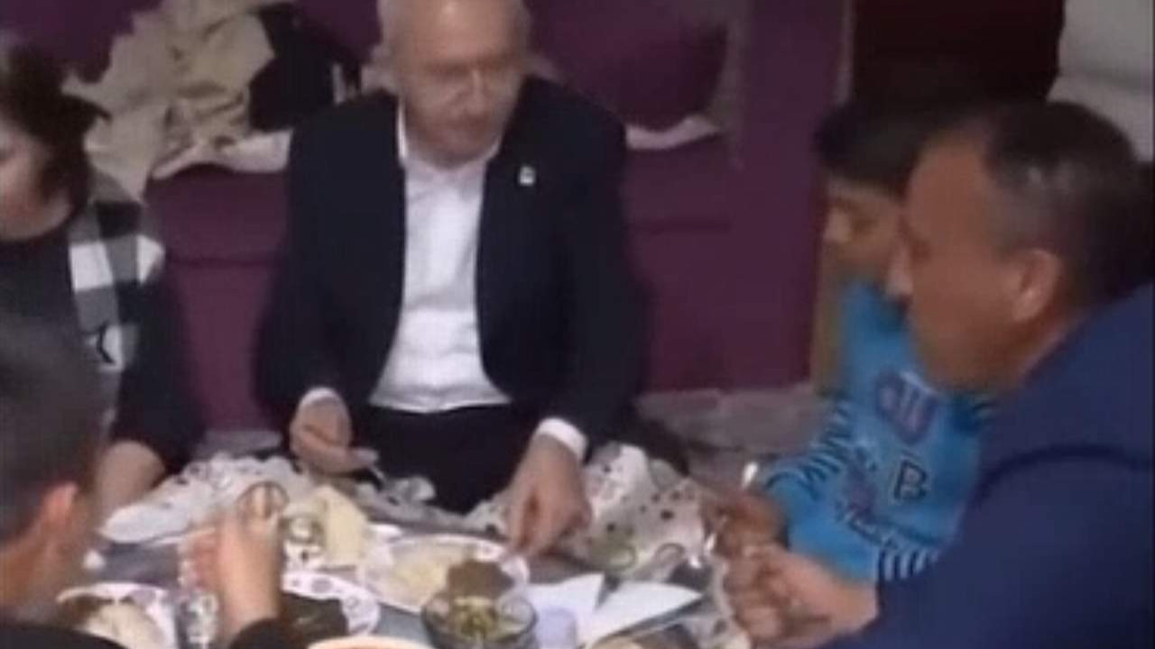 Aile ile birlikte yer sofrasına oturan Kılıçdaroğlu, sofrada kendisine verilen etli pilavı yerken yanında bulunan çocuğa tabağının etli kısmını çevirdi ve çocuğa "buradan ye" der gibi el hareketi yaptığı gözlerden kaçmadı.