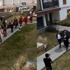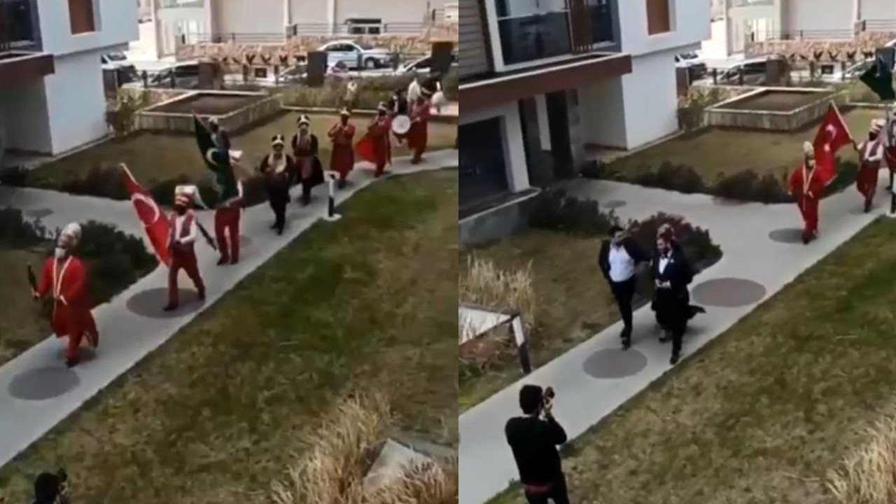 Mehteranın 'Ceddin Deden' adlı mehter marşı ile site içerisinde geçiş yapan damat ve yakınlarını, site sakinleri cep telefonlarıyla kaydederek sosyal medyada paylaştı.
