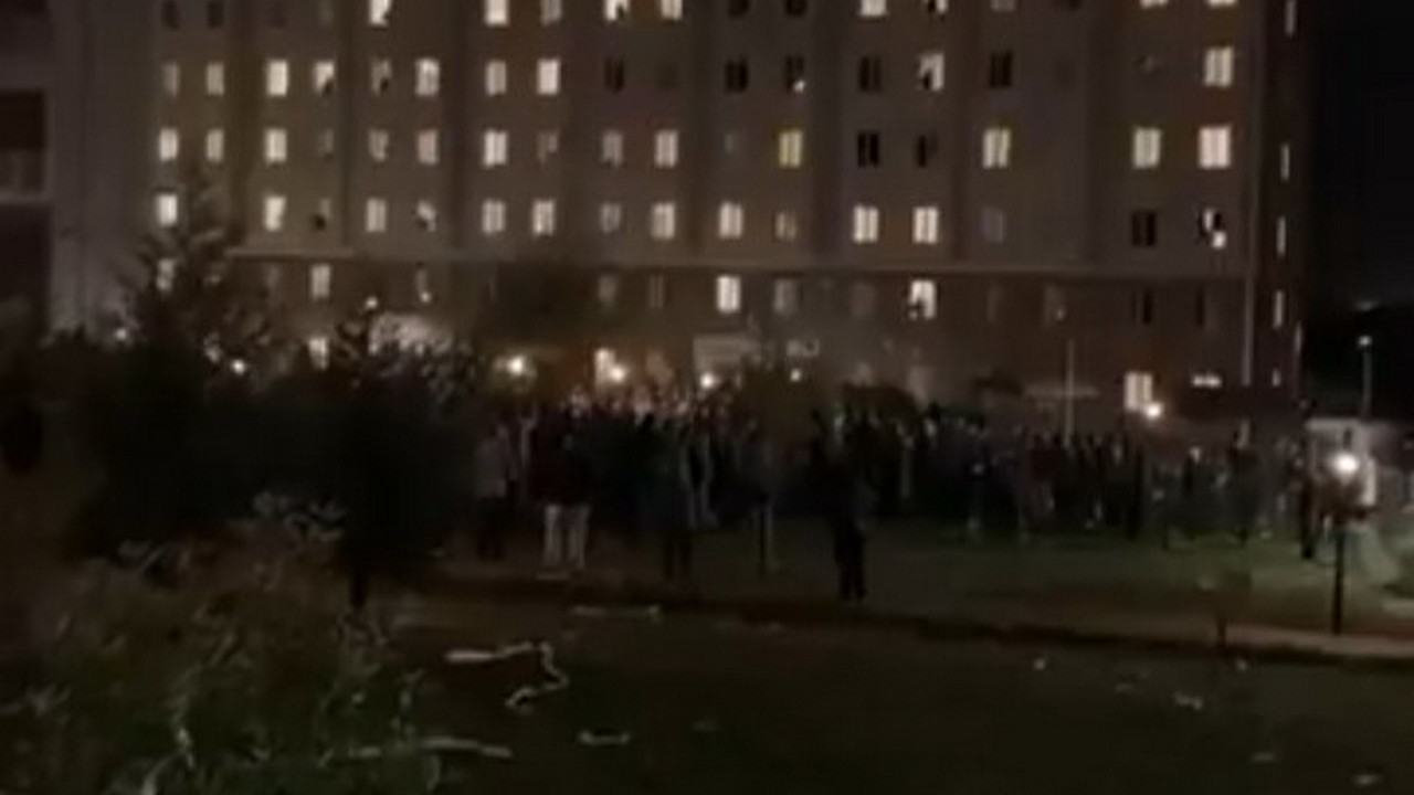Akşam saatlerinde başlayan protestoda binlerce öğrenci, yurt yönetiminin bulunduğu binanın önünde toplandı.