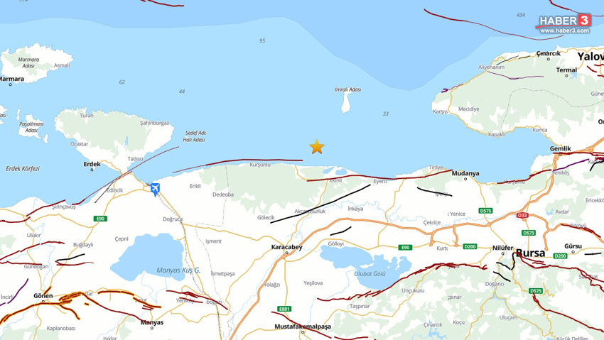AFAD, yerin 6,01 kilometre derinliğinde gerçekleşen bu sarsıntının merkez üssünü Marmara Denizi - Bursa Karacabey açıkları olarak tanımladı.