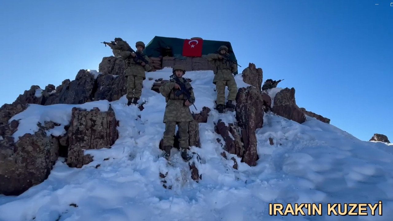 Irak'ın kuzeyinde görev yapan Mehmetçik yeni yıl mesajında, "Demir pençelerimiz arasına sıkıştırdığımız PKK'lı teröristlere kilit vurmak için mücadele verdiğimiz, Irak'ın kuzeyinden selam olsun milletimize. Yılmadan, usanmadan, girilemez denilen yerlere girdik. Ulaşılamaz denen yerlere ulaşarak Zap'ta da kilidi kapattık. Terörle mücadelemiz aynı tempo ve kararlılıkla devam edecektir. Sizlerin duası bizim en büyük gücümüzdür. Mutlu yıllar Türkiye" ifadelerini kullandı.