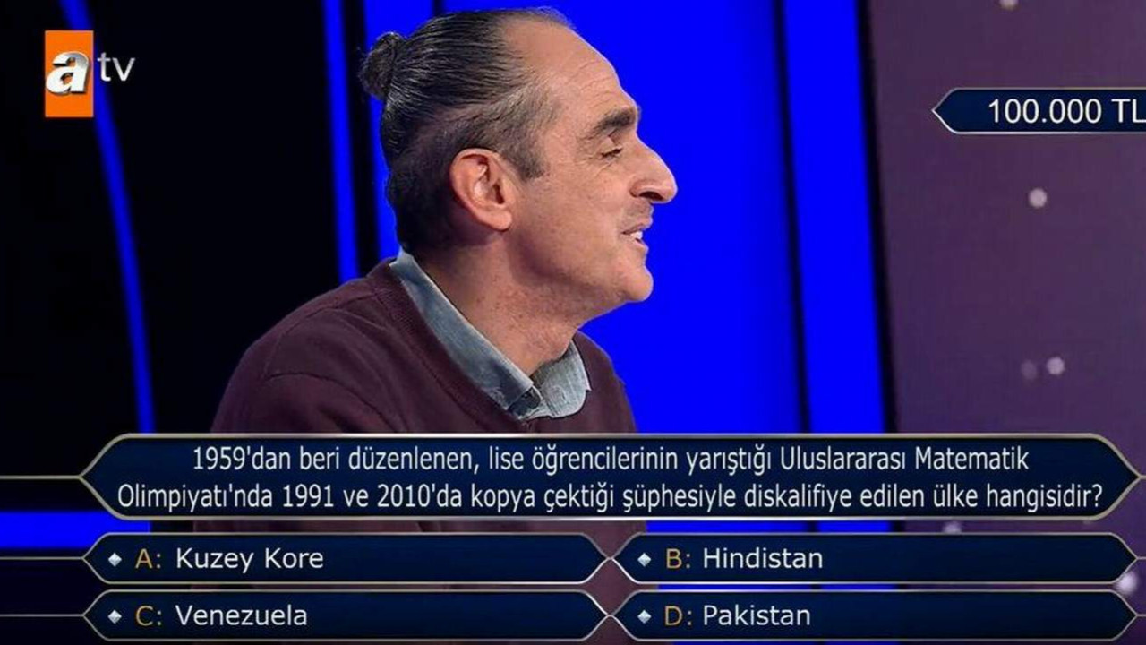Kenan İmirzalıoğlu'nun yönelttiği 100 bin TL değerindeki "1959'dan beri düzenlenen, lise öğrencilerinin yarıştığı Uluslararası Matematik Olimpiyatı'nda 1991 ve 2010'da kopya çektiği şüphesiyle diskalifiye edilen ülke hangisidir" sorusu görme engelli yarışmacı Şafak beyi zorlarken Kim Milyoner Olmak İster'e de damga vurdu.
