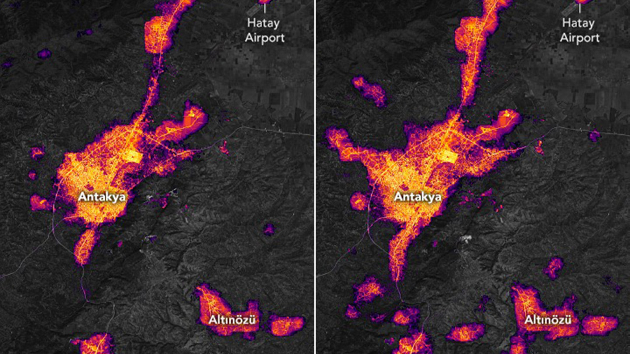 İki büyük depremden en büyük yarayı alan ilçelerden biri olan Antakya'nın NASA tarafından çekilmiş depremden önce ve depremden sonra görüntüleri yürekleri burktu.