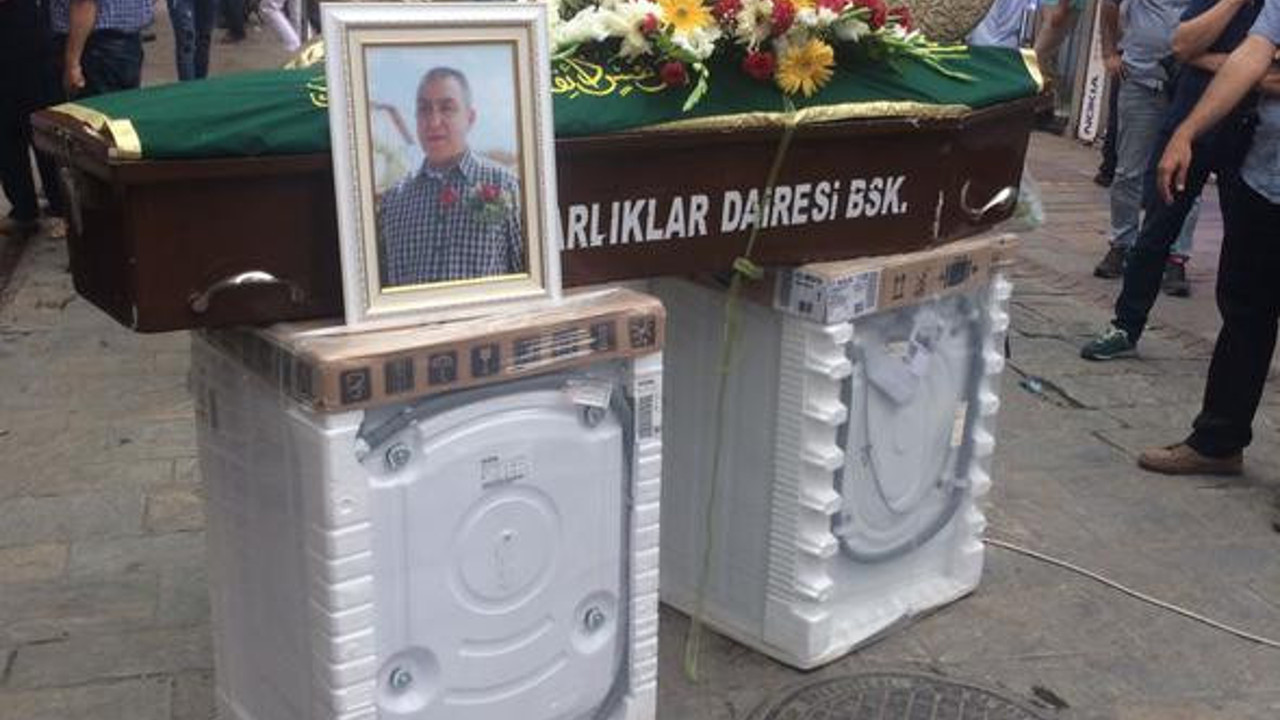 Abone Olİzmir'de kalp krizinden hayatını kaybeden 71 yaşındaki adamın cenazesi vasiyeti üzerine iki çamaşır makinesi üzerine kaldırıldı