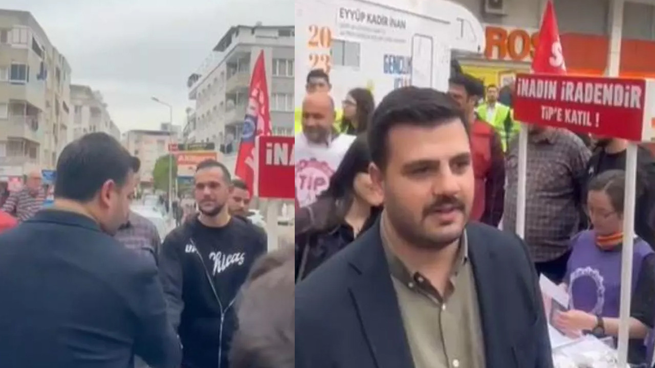 AK Parti İzmir 2. Bölge 1. sıra milletvekili adayı AK Parti Gençlik Kolları Genel Başkanı Eyyüp Kadir İnan, seçim çalışmaları kapsamında sokaklarda vatandaşlarla sohbet ederken dikkat çeken bir an yaşandı. İnan; Bayraklı Sevgi Yolu'nda seçim çalışmalarını yürüttüğü sırada aynı şekilde seçim çalışması yürüten TİP'li gençlerle karşılaştı.