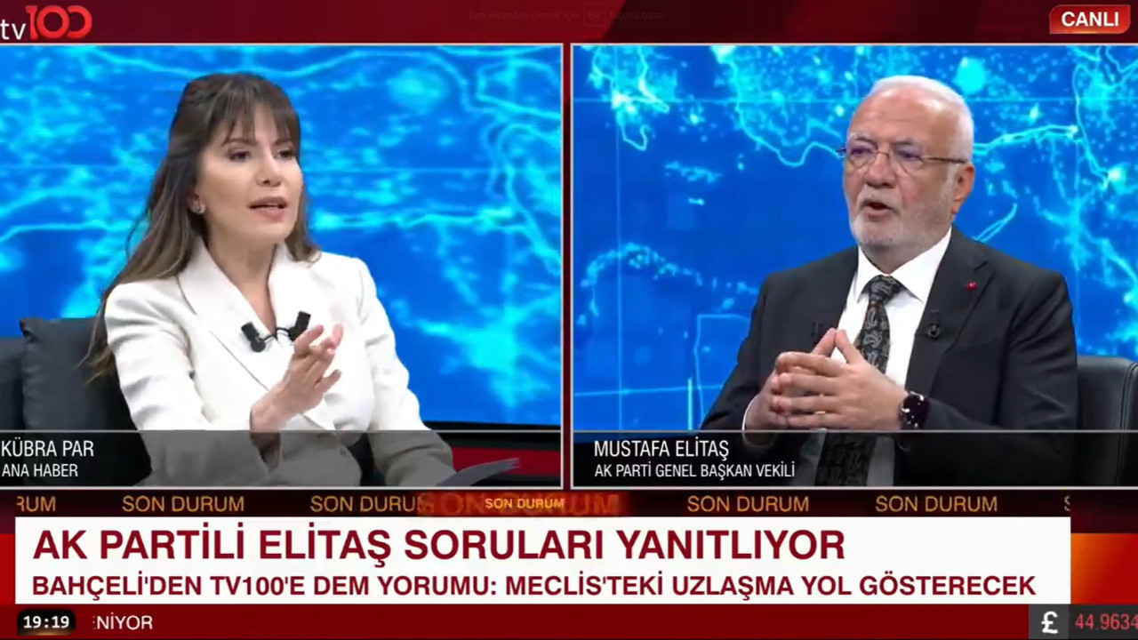 Kübra Par'ın "Sayın Erdoğan'ın da DEM Partililerin elini sıktığını görebilir miyiz?" sorusuna yanıt veren Elitaş, geçmişte DEM Parti'nin eski isimleriyle faal olan partilerinin olduğu dönemlerde önceki yönetimlerle el sıkışmaların olduğunu belirterek "Bundan sonra da herhangi bir törende el sıkmamazlık yapmaz diye düşünüyorum. Ortam olursa neden olmasın?" dedi.