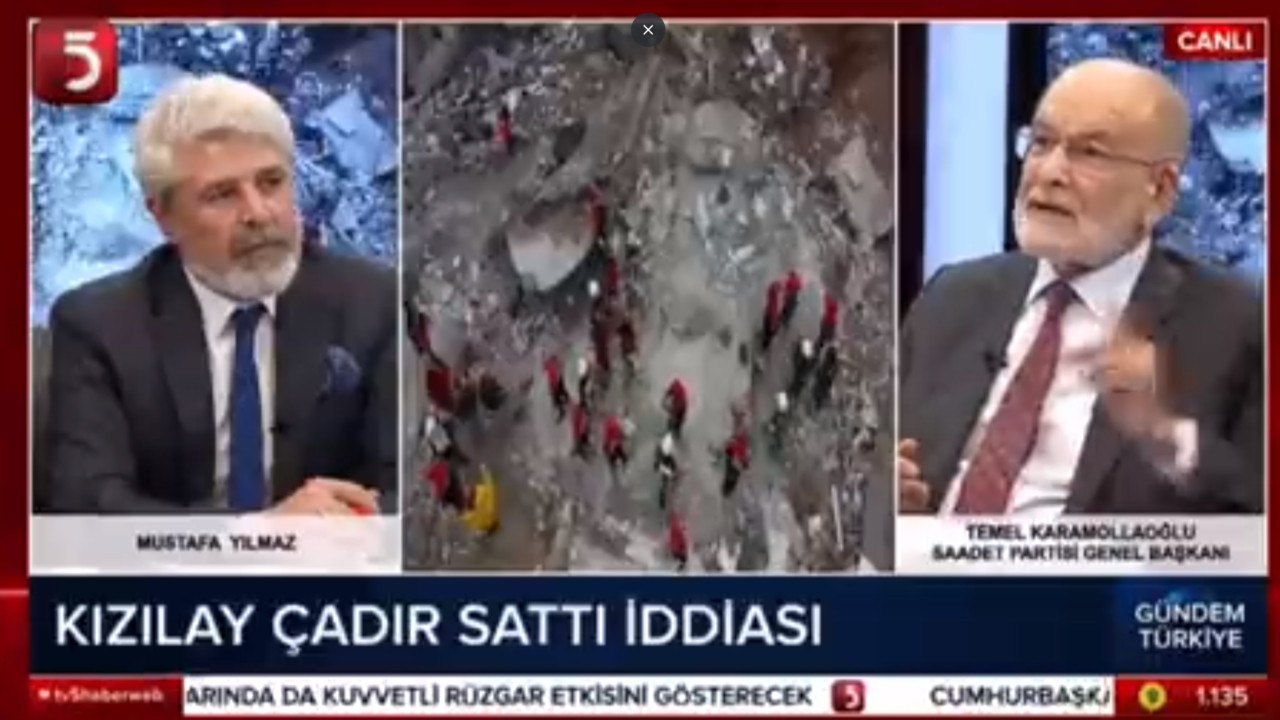 Katıldığı TV5 canlı yayınında Kızılay'ın depremlerin ardından çadır satmasını eleştiren Temel Karamollaoğlu, "Utanç verici bir manzara.