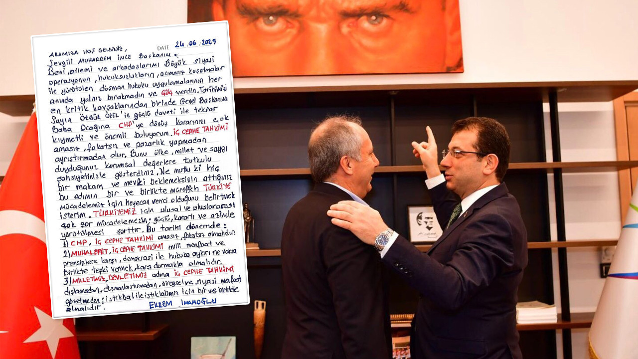 İmamoğlu ise İnce'ye yazdığı mektubunda şu ifadelere yer verdi:
