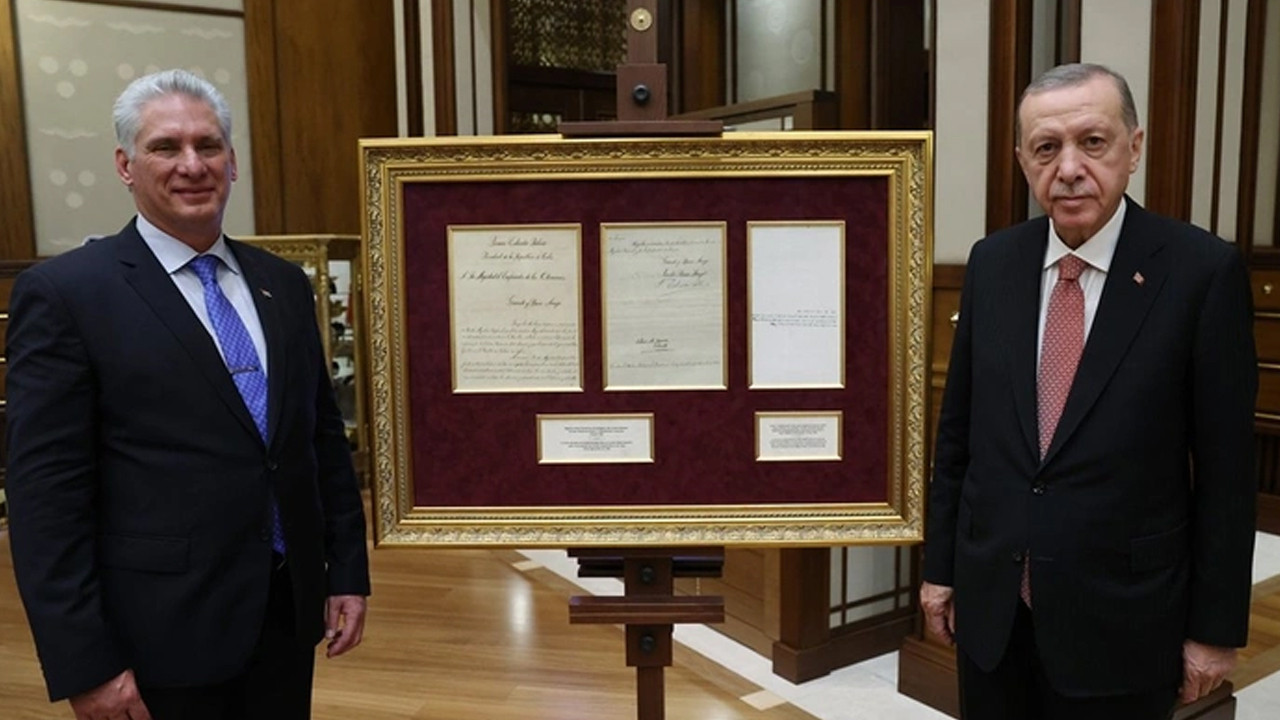 Cumhurbaşkanı Erdoğan, o dönem Osmanlı tarafından Küba'ya gönderilen cevap mektubunu da Küba Devlet Başkanı Bermudez'e takdim etti.