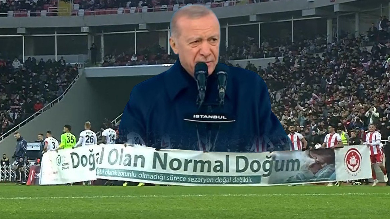 Açılış töreninde konuşan Erdoğan, Trendyol Süper Lig'te Sivasspor ile Fenerbahçe arasında oynanan mücadele öncesinde futbolcuların taşıdığı ve kamuoyunda büyük tepki toplayan "Doğal olan normal doğum" pankartına sahip çıktı.