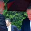 Arnavutluk Başbakanı Edi Rama tarafından resmi törenle karşılanan Erdoğan, kameralara poz verdi. İki liderin yağmur altındaki buluşmasına ise Rama'nın beyaz spor ayakkabıları damga vurdu. Erdoğan'ın o anlarda ayakkabıları göstererek Rama'ya bir şeyler dediği görülüyor.
