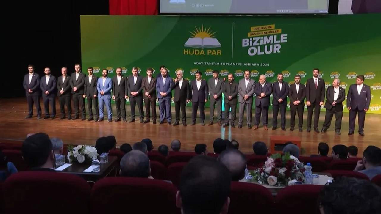 Hür Dava Partisi (HÜDA PAR) Genel Başkanı Zekeriya Yapıcıoğlu, Ankara'daki Necmettin Erbakan Kongre Merkezi'nde partisinin 31 Mart yerel seçimlerine katılacak belediye başkan adaylarını tanıttı ve seçim beyannamesini açıkladı.
