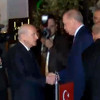 Devlet Bahçeli, görüşme sonrası Cumhurbaşkanı Erdoğan'ı konutun kapısından uğurladı.
