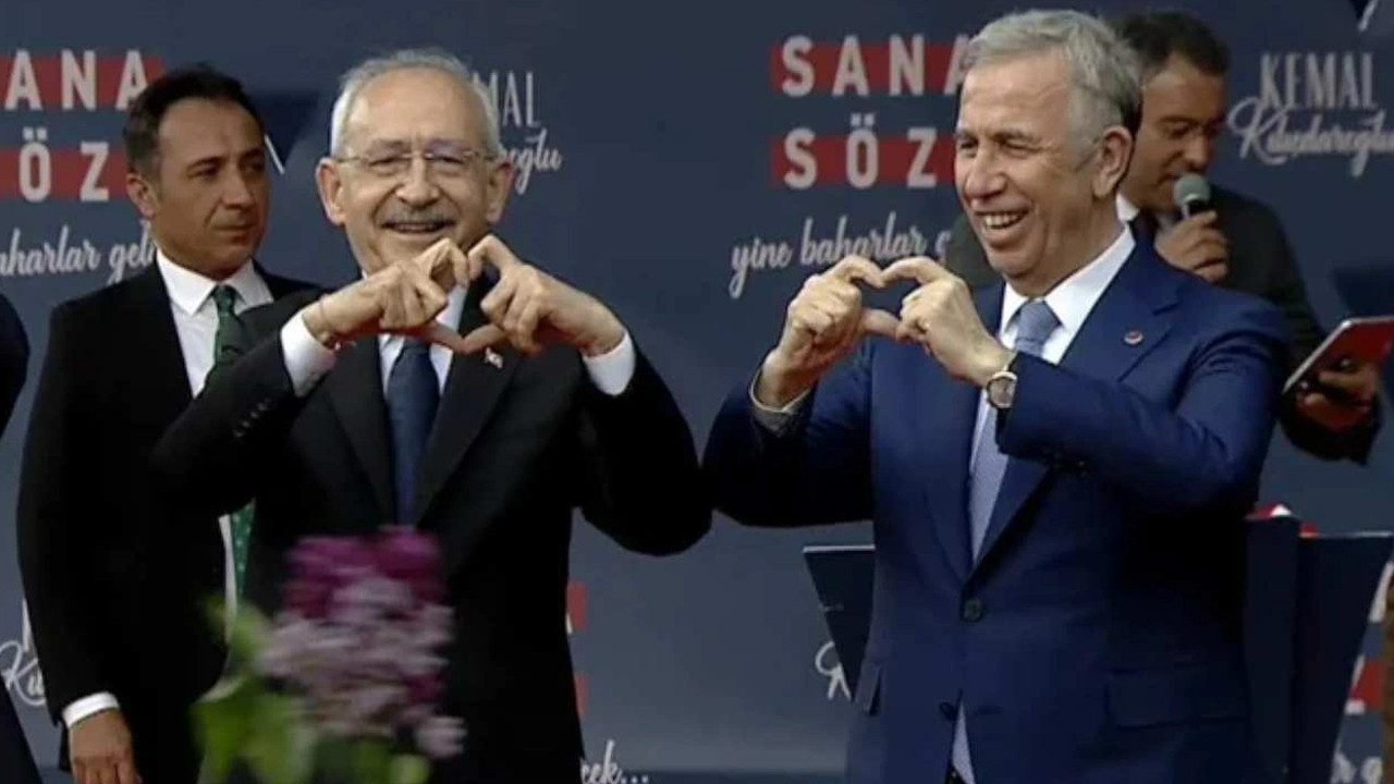 Ankara Büyükşehir Belediye Başkanı Mansur Yavaş'ın, Millet İttifakı'nın Cumhurbaşkanı Adayı Kemal Kılıçdaroğlu'nun Afyonkarahisar mitinginde eliyle kalp işareti yapmaya çalıştığı anlar sosyal medyada gündem oldu.
