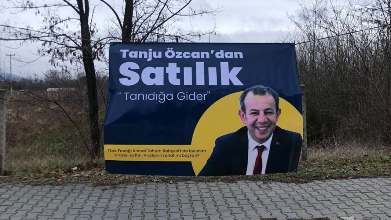Sabah'tan Kasım Şahin'in haberine göre Fındık bahçesinin olduğu bölgeye Tanju Özcan’ın fotoğrafının yer aldığı bir pankart asıldı. Pankart üzerinde "Tanju Özcan’dan satılık, tanıdığa gider. Türk Fındığı Klonal Tohum Bahçesi'nde bulunan araziyi sattın. Vicdanın rahat mı Başkan?” ifadeleri yer aldı.