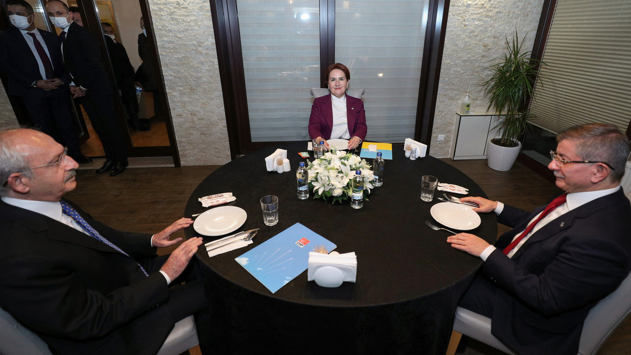 CHP Genel Başkanı Kemal Kılıçdaroğlu, İYİ Parti Genel Başkanı Meral Akşener ve Gelecek Partisi Genel Başkanı Ahmet Davutoğlu, akşam yemeğinde bir araya geldi.
