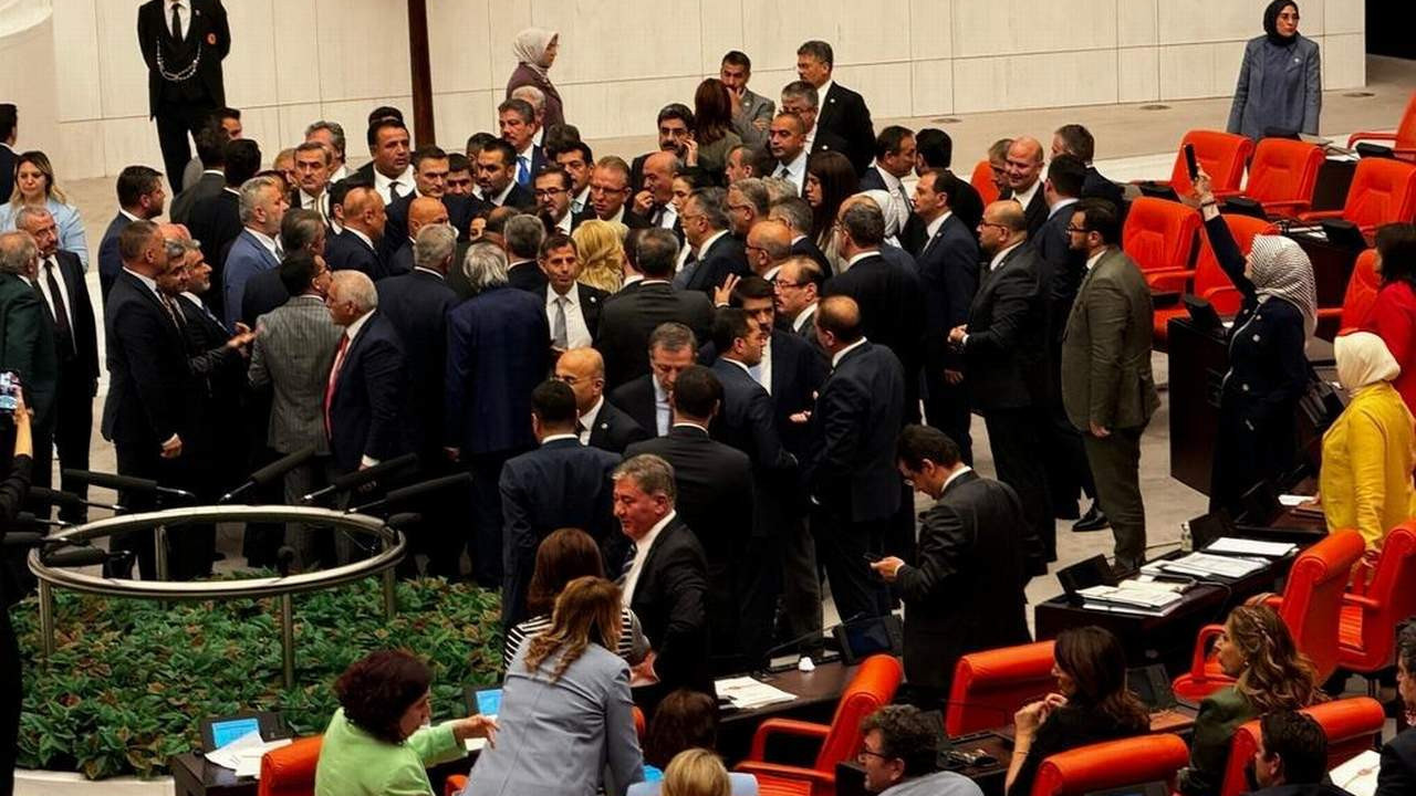 CHP milletvekillerinin araya girme çabasına rağmen AK Parti ve DEM Partililer arasında yumruklu kavga yaşandı. DEM Parti'li Bozan'ın Genel Kurul’dan çıkması ile gerginlik yatıştı. Aranın ardından yeniden Genel Kurul yeniden toplandı. Ancak Bozdağ, yaşananlar nedeniyle görüşmelere 40 dakika ara verdi. (DHA)
