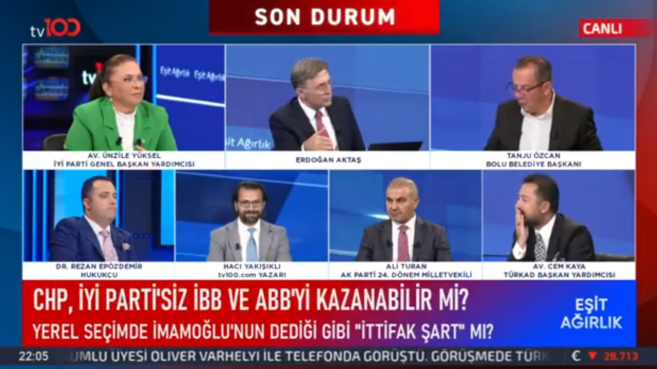 İYİ Parti Genel Başkan Yardımcısı Avukat Ünzile Yüksel, Bolu Belediye Başkanı Tanju Özcan, TÜRKAD Başkan Yardımcısı Avukat Cem Kaya, AK Parti 24. Dönem Milletvekili Ali Turan, tv100.com yazarı Hacı Yakışıklı, hukukçu Dr. Rezan Epözdemir, Erdoğan Aktaş ile Eşit Ağırlık programına konuk oldu.