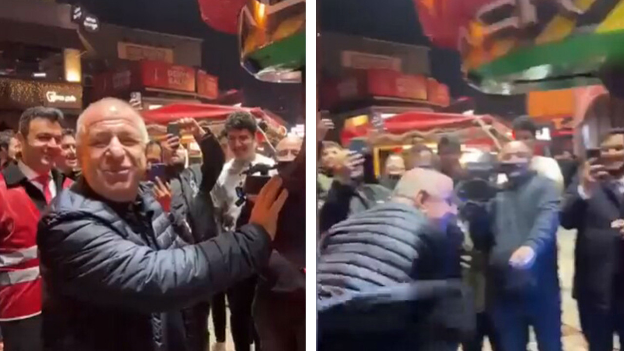 Zafer Partisi Genel Başkanı Ümit Özdağ, Beşiktaş'ta çarşı esnafını ziyaret ettiği esnada boks makinesine yumruk attı.