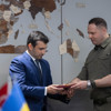 Ziyarette, Baykar Teknoloji Lideri Selçuk Bayraktar'a, Ukrayna Devlet Başkanı Volodimir Zelenskiy tarafından verilen Devlet Liyakat Nişanı'nı takdim etti.