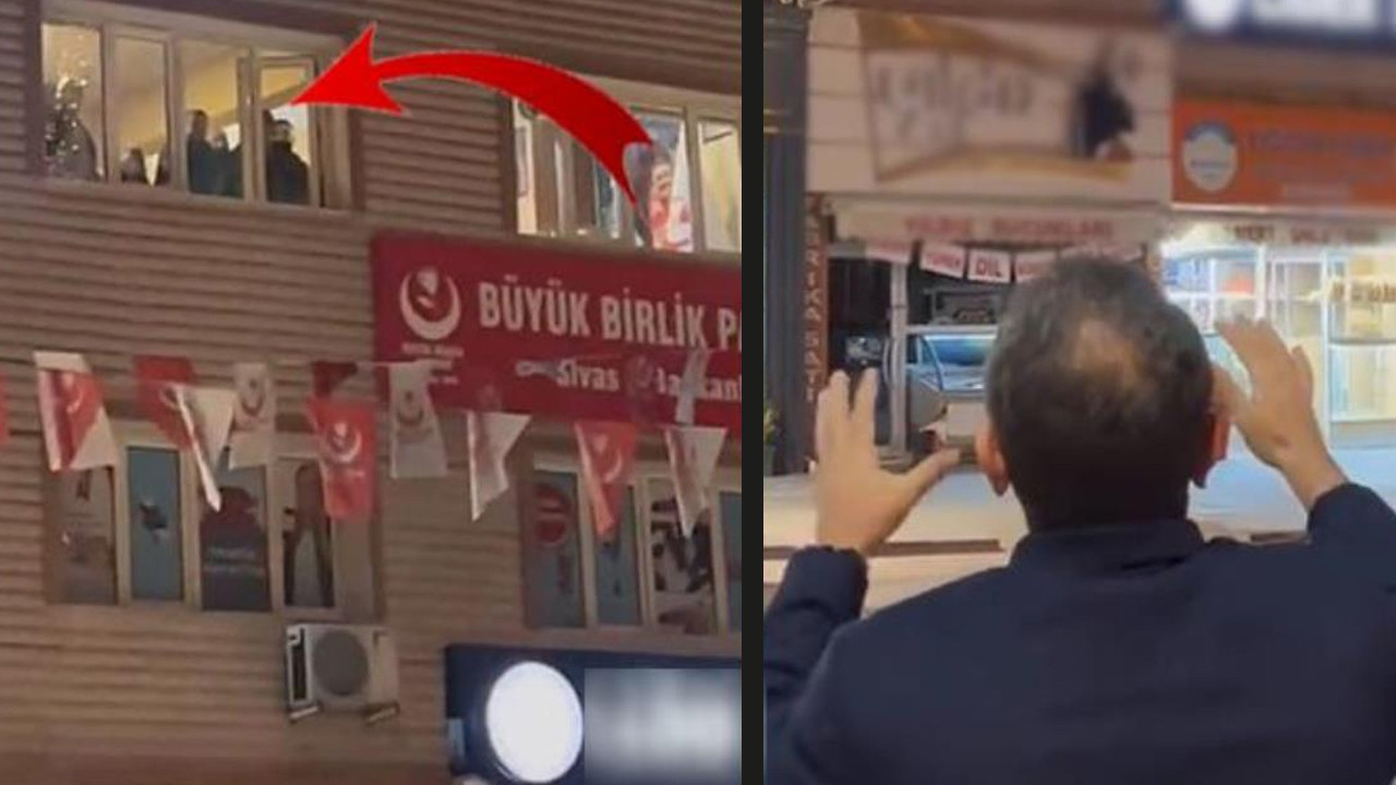 Genel Başkanlığı Mustafa Destici'nin yaptığı Cumhur İttifakı'na destek veren Büyük Birlik Partisi'nin Sivas İl Başkanlığı önünden geçen İmamoğlu, içeriye çaya davet edildi.