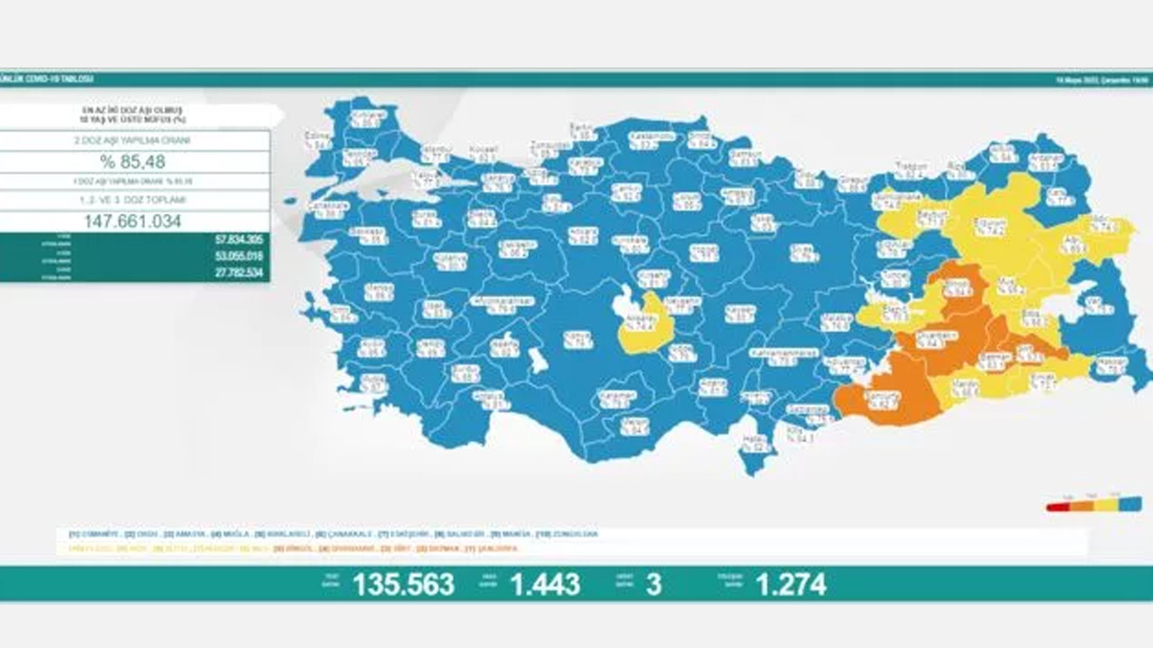 Sağlık Bakanlığı, Türkiye'nin 18 Mayıs 2022 koronavirüs tablosunu açıkladı.