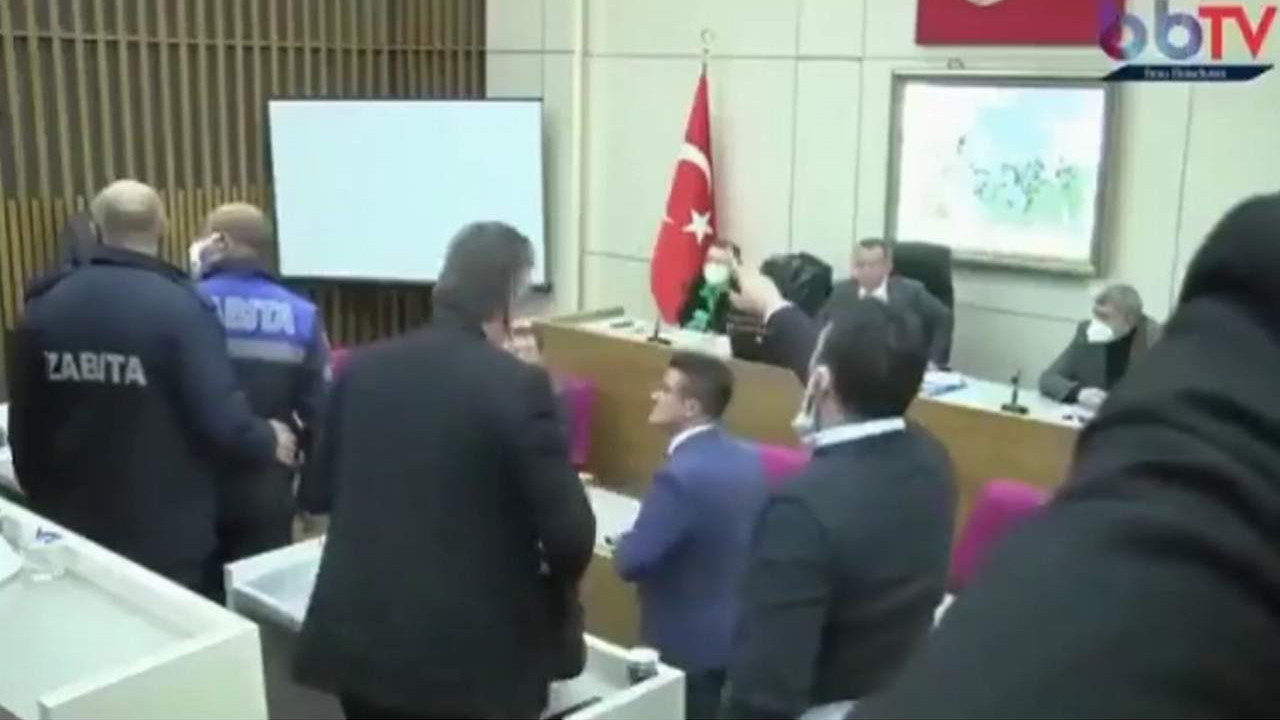 Tanju Özcan AK Partili ismi zabıta ile salondan attırdı