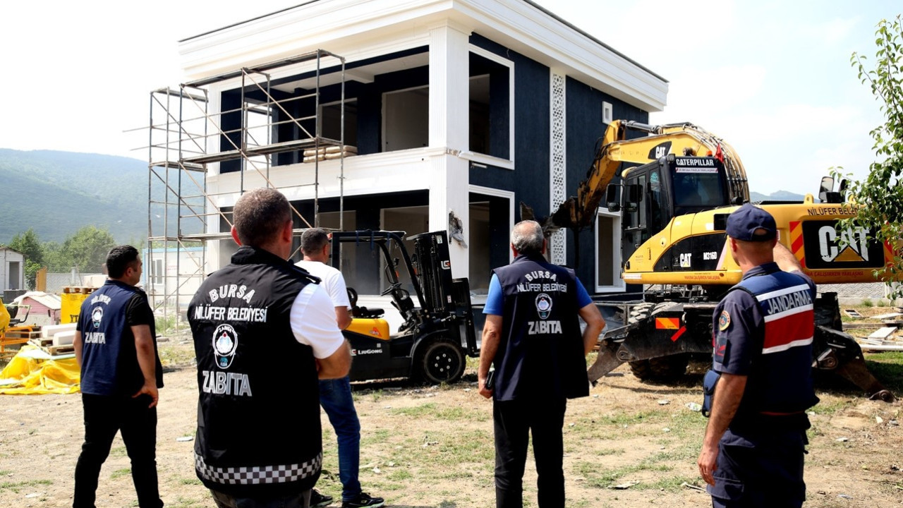 Abone OlBursa'nın Nilüfer Belediyesi, 5 dönümlük tarım arazisine yapılan kaçak lüks binayı yıktı.