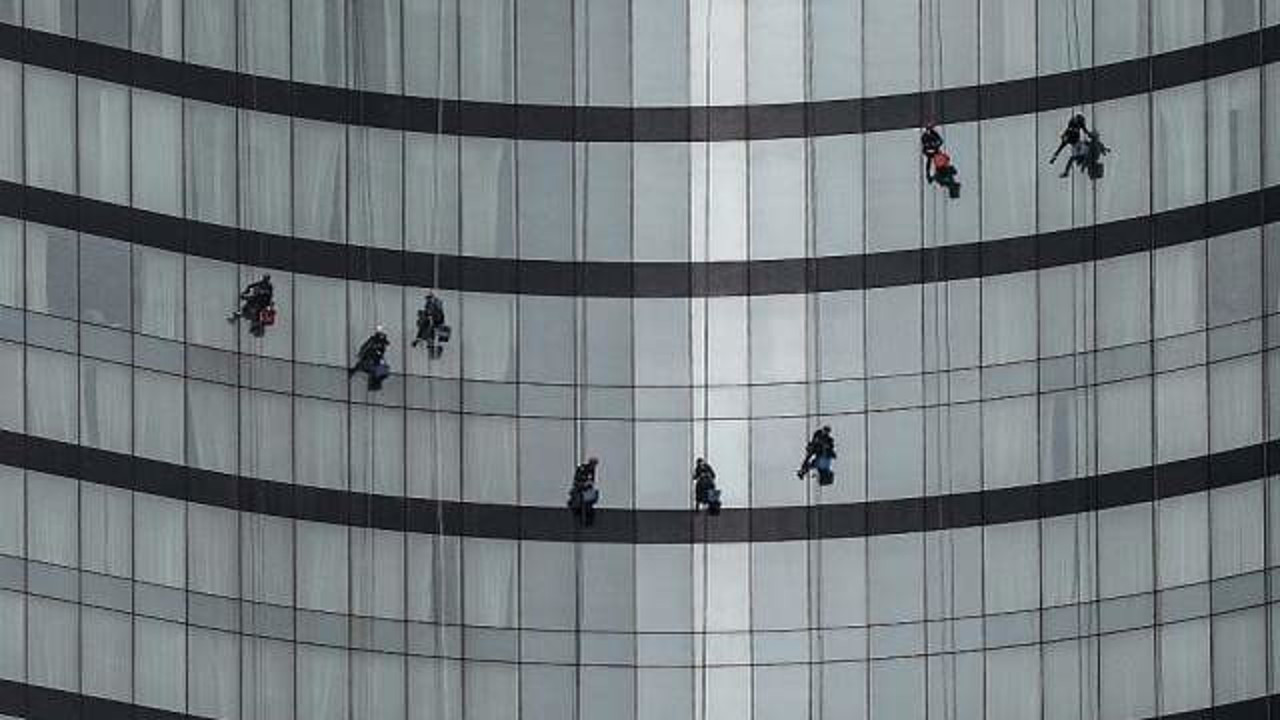Şişli’de yaşanan olay, görenleri de hayrete düşürdü. Lüks bir otelin camlarını temizlemek için çatıya bağlı olan iple aşağıya sarkan 9 işçi, yürekleri ağza getirdi. İşçilerin kendince güvenlik önlemlerini almasına rağmen metrelerce yükseklikte çalışmaları, vatandaşları korkuttu. Yalnızca çatıya bağlı olan ipleriyle havada kalan işçiler, adeta ölümle dans etti. İşçilerin izleyen vatandaşlar ise gördükleri manzara karşısında şaştı kaldı.